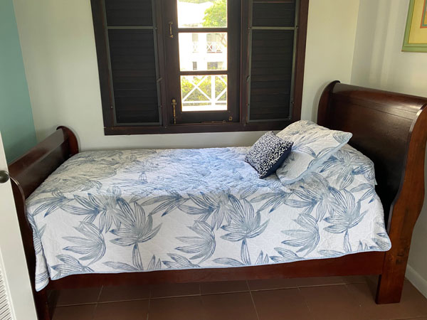 The second master bedroom suite features twin size beds that can be converted into a king size, making it perfect for either a family or two couples. The bedroom has a wall unit air conditioning, ceiling fan and access to see the views outside.