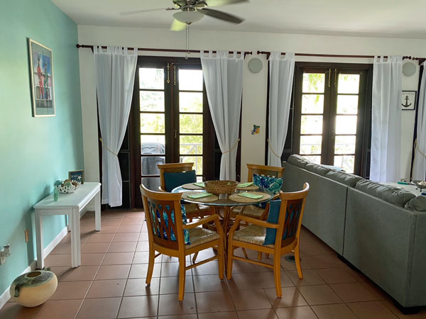 The living and dining room area opens out to the deck to enjoy the ambiance.