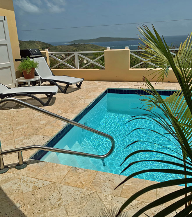 Fantastic condo with amazing views! Our family of 4 truly enjoyed the Hook, Wine and Sinker in Villa Madeline. The condo was well appointed, spacious and we absolutely loved the pool! Anne was great to work with and made the booking process simple. We will use Anne again! If you are looking for a beautiful and comfortable place to stay, we highly recommend!The condo is the perfect place to relax and view the Caribbean Sea whether you are in the living room, around the private pool or in the bedroom. The view is spectacular. So peaceful, quiet and secure.
