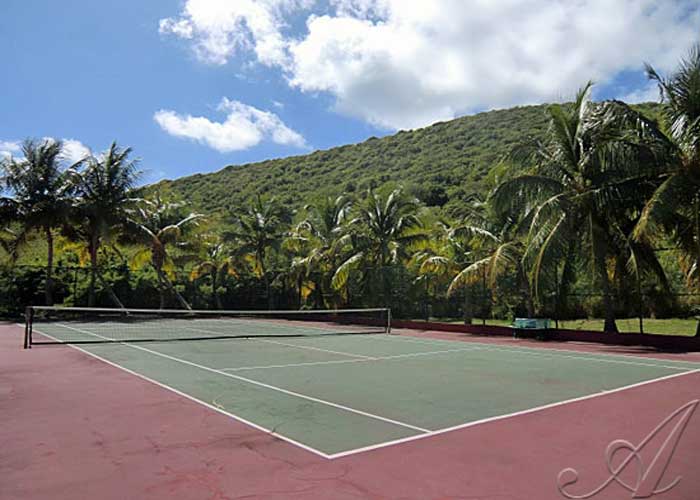 Lovely sea views with palm trees swaying in the breeze and there's even a tennis court on grounds.